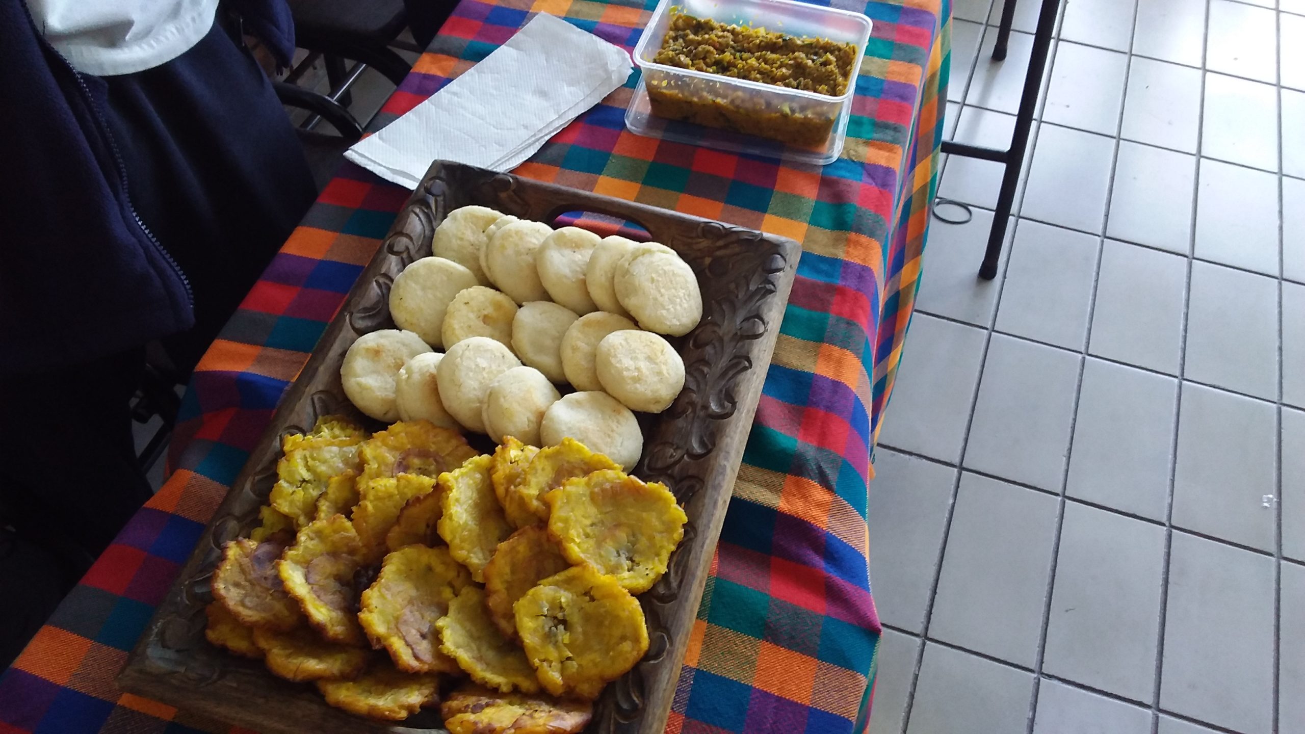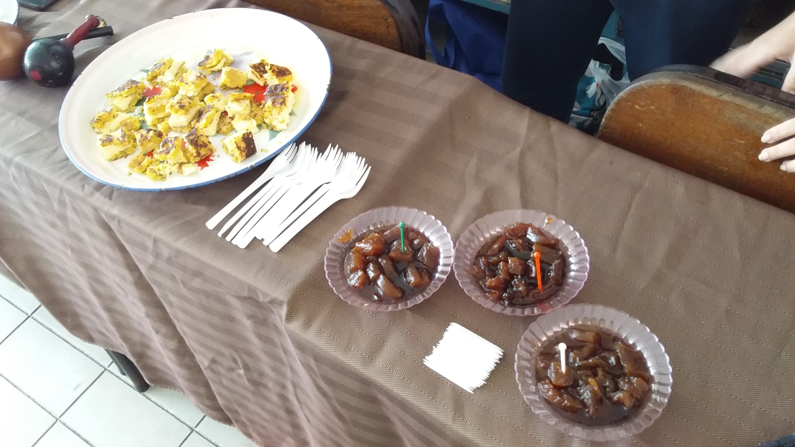 Pudieron degustar y compartir amenamente entre otros platos, dulces y bebidas: chicha de arroz, carato de maíz, pan andino, tortilla charera, patacones, arepitas de cazón, panelitas de leche, pastel de chucho, pisca andina, dulces y bebidas a base de coco y hasta sopa de pescado, asado negro y carne en vara.