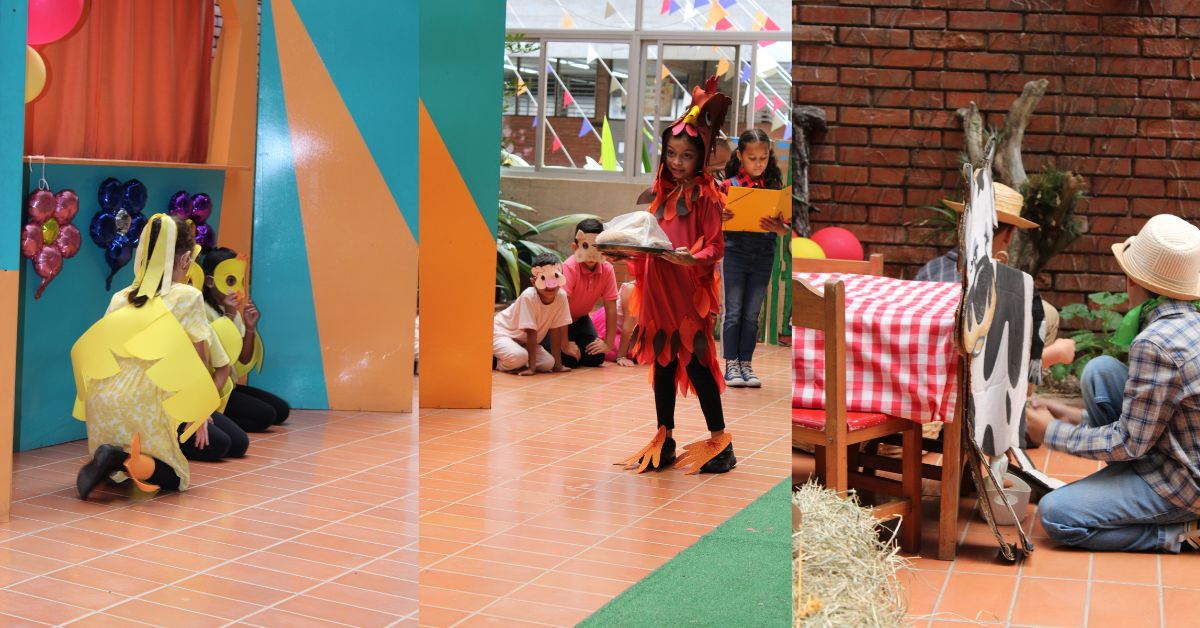 Este viernes los estudiantes de 2do. grado presentaron la obra de teatro la “Gallinita Roja” donde los niños demostraron sus talentos en diferentes ramas del teatro como son: oratoria, presentación y actuación.