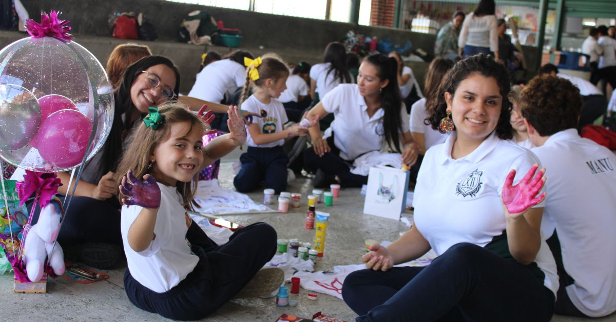 Este lunes 23 de octubre los estudiantes de 1er grado y sus padrinos de 5to año crearon diseños en franelas elaborados con pinturas,  donde plasmaron sus huellas en las franelas creando un momento de creatividad, compañerismo y mucha arte.