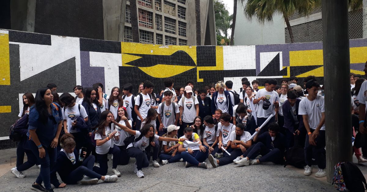 Los estudiantes de 4to año, junto con las Madres Delegadas, las Profesoras Lorena Rodríguez y María de Los Angeles Robertti y el responsable de la Actividad Prof. Víctor García, realizaron la visita guiada a la Ciudad Universitaria de Caracas, Patrimonio Cultural de la Humanidad desde el año 2001.